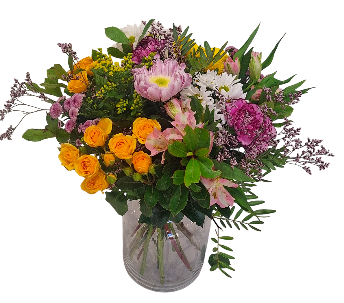 Si quieres tu ramo preparado en un jarrón de cristal, añádelo al carrito por sólo 15 €