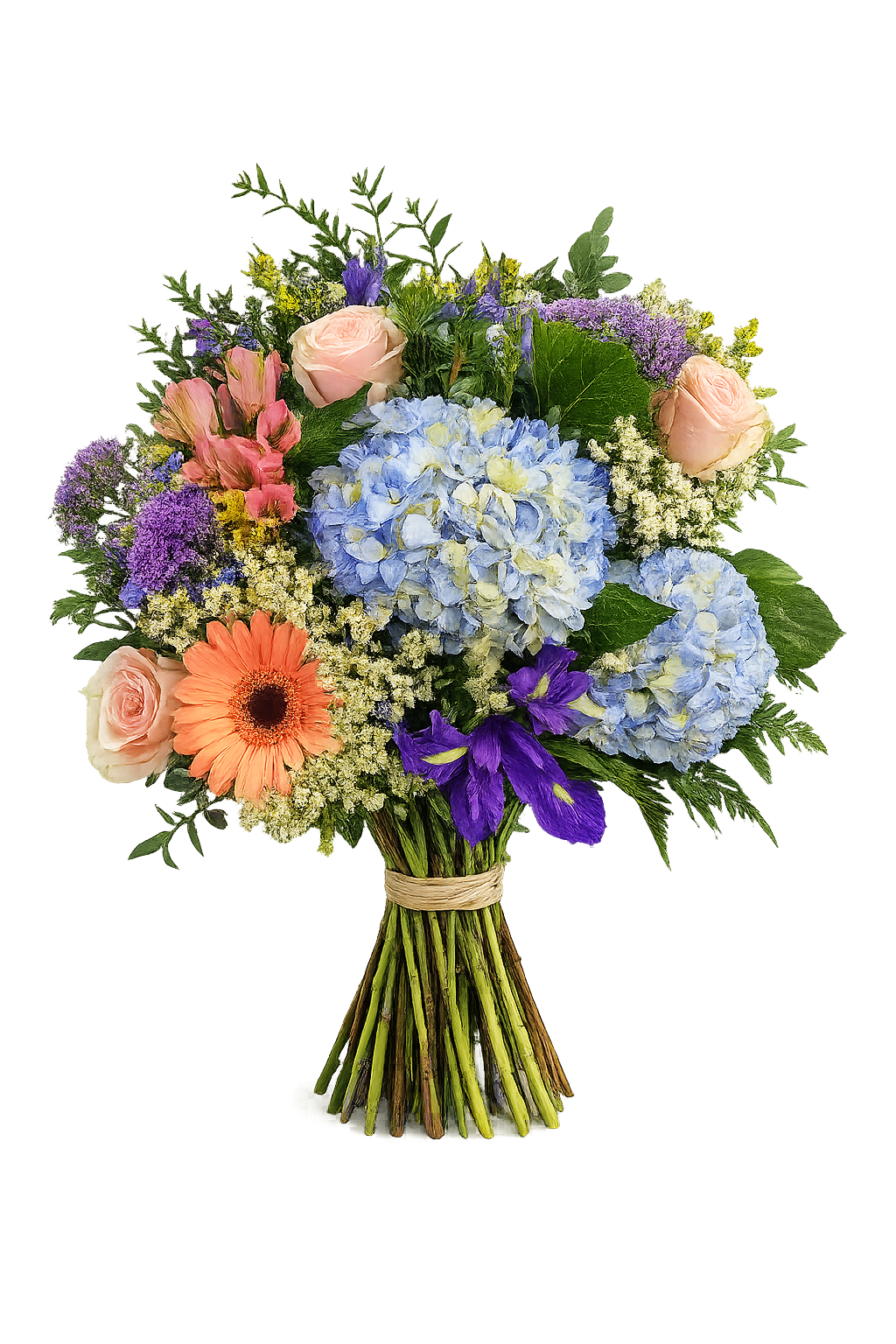 Nuestro ramo espectacular de flores variadas está diseñado para quienes buscan un detalle floral impactante y lleno de personalidad. Su combinación de hortensias, rosas, gerberas y flores complementarias crea una composición con volumen, contraste y un equilibrio visual que no pasa desapercibido.