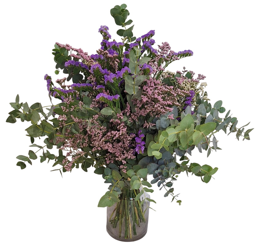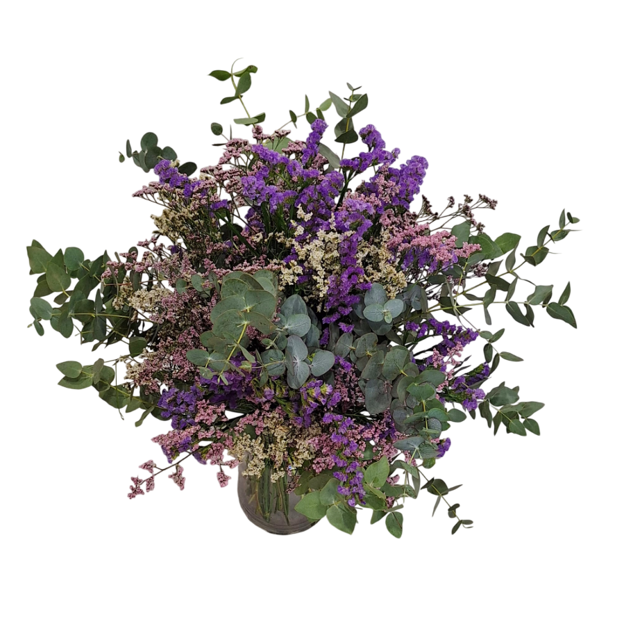 Precioso ramo que puedes secar y mantener varios meses decorando en casa. Compuesto por siemprevivas, limonium de colores blancos y rosas y eucalipto, todas esta variedades de flores se pueden preservar y mantener durante mucho tiempo.